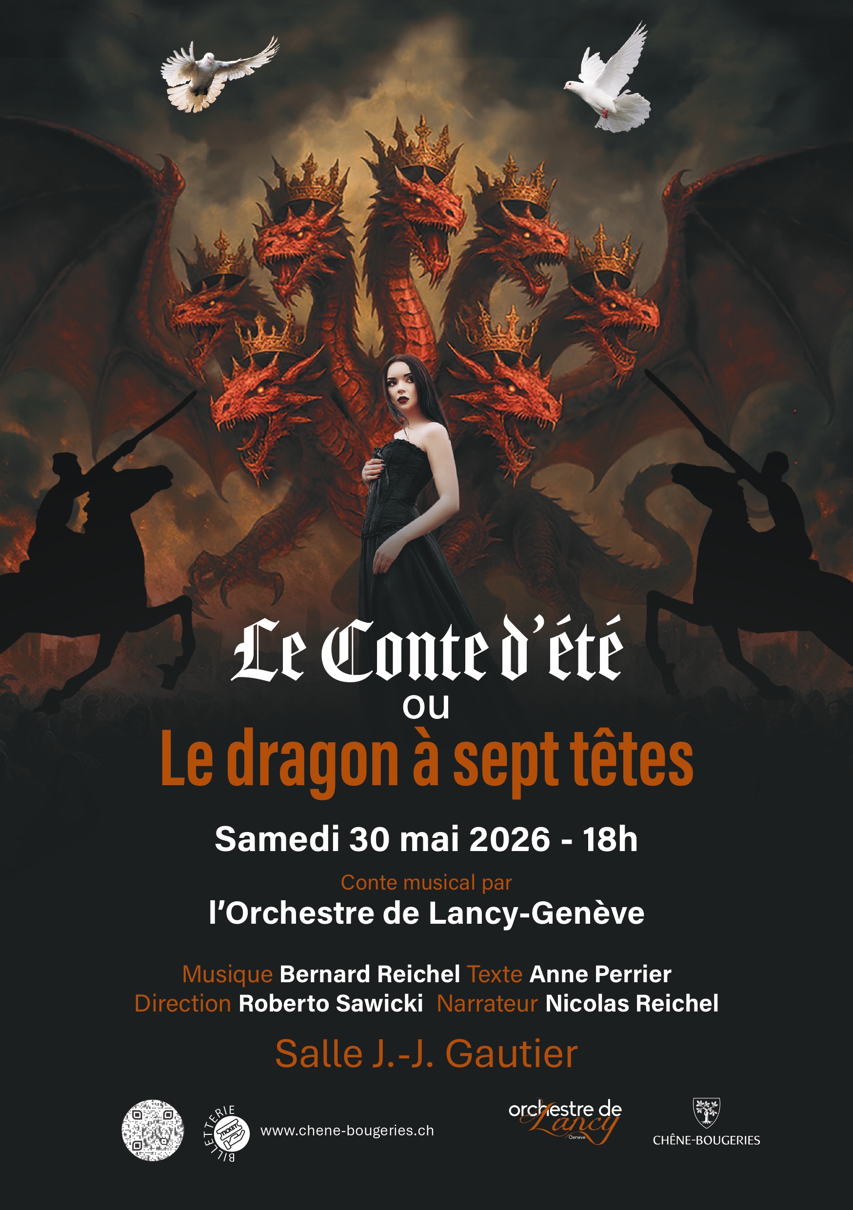 Sur une musique féérique de Bernard Reichel et un texte d’Anne Perrier, l’Orchestre de Lancy-Genève et le chœur sous la direction de Roberto Sawicki, Nicolas Reichel narrateur, présentent dans la plus belle tradition des contes populaires, une histoire enchantée en nouvelle création, avec tous les ingrédients propres à cet univers merveilleux qui enchante petits et grands.